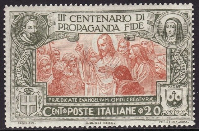 Visibility: public Image owner: none postage 6/11/1923 20c ol&brn issue=Propagation of the Faith d=Jesus sends the apostles to preach the Gospel & St Theresa perf=14 Crops No visible images cropped from this one. Measurements Resolution is unknown. Source Source name: Colnect File URL: http://i.colnect.net/b/5782/805/Jesus-sends-the-apostles-to-preach-the-Gospel.jpg Uploaded November 4, 2019, 4:13 pm by Stan Shebs |