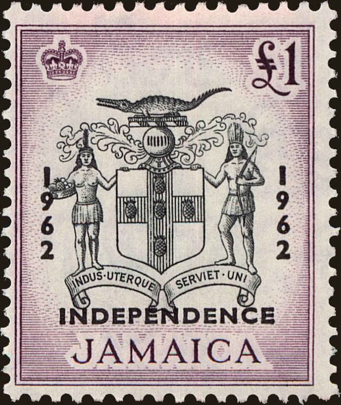 Visibility: public Image owner: none postage 8/8/1962 1lb ltvio&blk issue=independence overprint d=arms of Jamaica (1956) ovpt=1962 INDEPENDENCE 1962 oc=blk on=1956-1lb wmk=mult crown & script CA Crops No visible images cropped from this one. Measurements Resolution is unknown. Source Source name: Colnect File URL: http://i.colnect.net/b/5277/744/Arms-of-Jamaica-Overprinted.jpg Uploaded November 4, 2019, 9:46 pm by Stan Shebs |