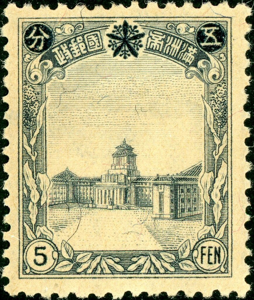 Visibility: public Image owner: none postage 12/5/1936 5f issue=1936b d=General Affairs State Council building wmk=chars Crops No visible images cropped from this one. Measurements Resolution is unknown. Source Source name: Colnect File URL: http://i.colnect.net/b/6034/753/Parliament-Hsinking.jpg Uploaded November 5, 2019, 4:59 pm by Stan Shebs |