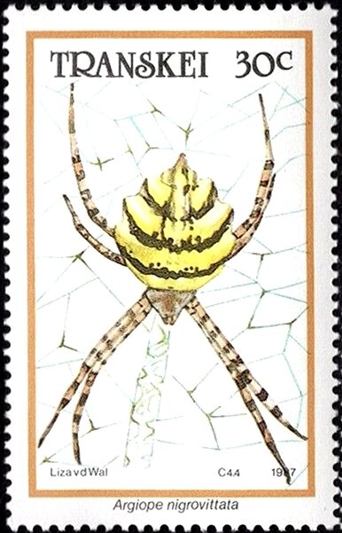Visibility: public Image owner: none postage 8/27/1987 30c multi issue=Spiders 1987 d=Argiope nigrovittata unwmk Crops No visible images cropped from this one. Measurements Resolution is unknown. Source Source name: Colnect File URL: http://i.colnect.net/b/5966/052/Garden-Spider-Argiope-nigrovittata.jpg Uploaded November 6, 2019, 7:50 pm by Stan Shebs |