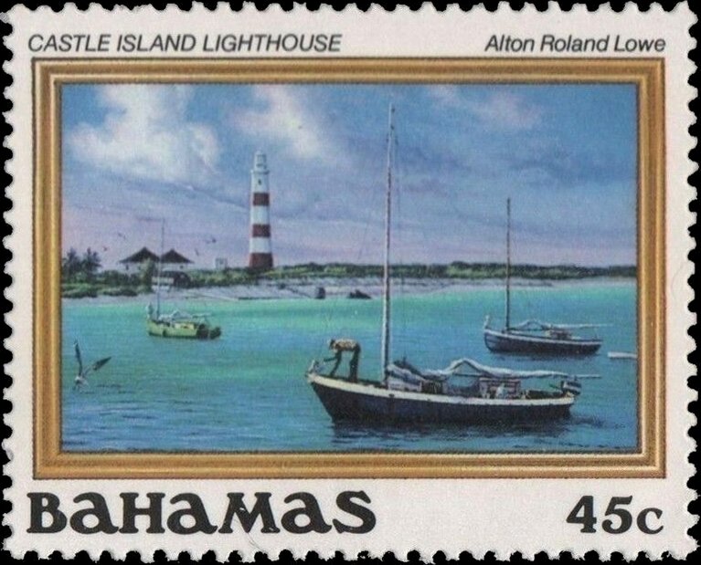 Visibility: public Image owner: none postage 3/31/1987 45c multi dt=lighthouses (1987 Bahamas) d=Castle Island Lighthouse wmk=mult crown & script CA perf=14.25 Crops No visible images cropped from this one. Measurements Resolution is unknown. Source Source name: Colnect File URL: http://i.colnect.net/b/5867/344/Castle-Island.jpg Uploaded November 7, 2019, 9:02 pm by Stan Shebs |