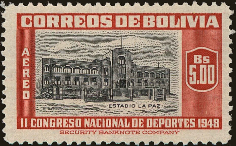 Visibility: public Image owner: none postage 3/15/1951 5b red&blk issue=La Paz 400th d=Captain Alonso de Mendoza founding La Paz unwmk Crops No visible images cropped from this one. Measurements Resolution is unknown. Source Source name: Colnect File URL: http://i.colnect.net/b/5396/161/La-Paz-Stadium.jpg Uploaded November 9, 2019, 3:20 pm by Stan Shebs |
