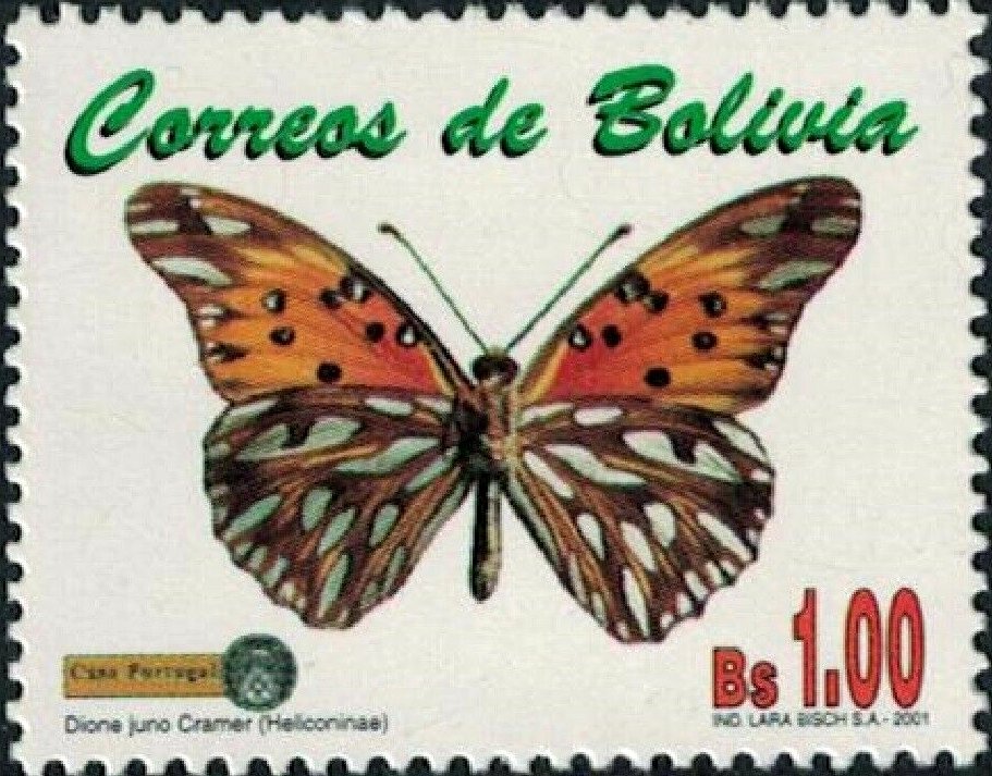 Visibility: public Image owner: none postage 8/30/2001 1b multi issue=butterflies 2001 dt=butterflies (2001 Bolivia) d=Dione juno (2001) unwmk Crops No visible images cropped from this one. Measurements Resolution is unknown. Source Source name: Colnect File URL: http://i.colnect.net/b/5785/565/Juno-Silverspot-Dione-juno.jpg Uploaded November 9, 2019, 3:47 pm by Stan Shebs |