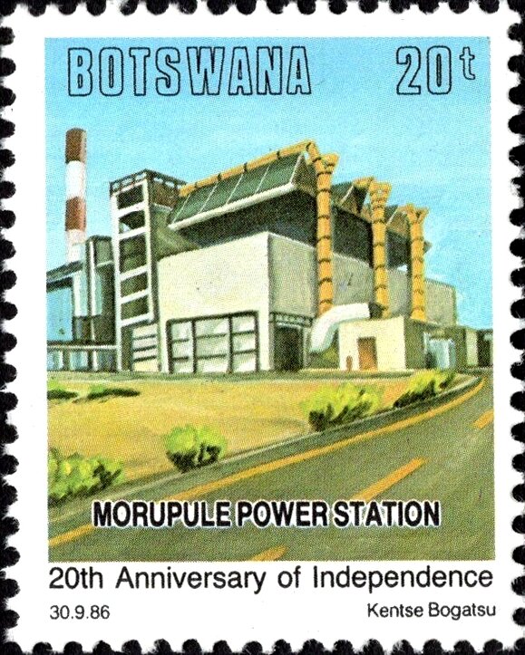 Visibility: public Image owner: none postage 9/30/1986 20t multi issue=20th Anniversary of Independence d=Morupule power station unwmk Crops No visible images cropped from this one. Measurements Resolution is unknown. Source Source name: Colnect File URL: http://i.colnect.net/b/6175/882/Morupule-Power-Station.jpg Uploaded November 9, 2019, 6:51 pm by Stan Shebs |