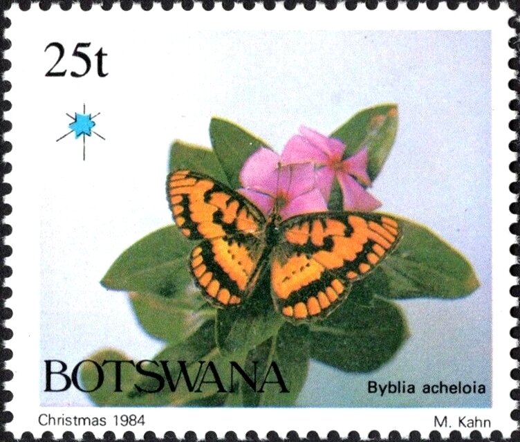 Visibility: public Image owner: none postage 11/5/1984 25t multi dt=butterflies (1984 Botswana) d=Byblia acheloia (1984) unwmk Crops No visible images cropped from this one. Measurements Resolution is unknown. Source Source name: Colnect File URL: http://i.colnect.net/b/6175/876/Common-Joker-Byblia-acheloia.jpg Uploaded November 9, 2019, 7:12 pm by Stan Shebs |