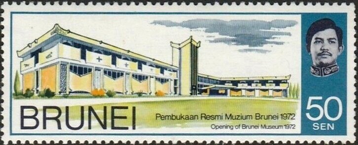 Visibility: public Image owner: none postage 2/29/1972 50c multi issue=museum opening wmk=St Edwards crown & CA Crops No visible images cropped from this one. Measurements Resolution is unknown. Source Source name: Colnect File URL: http://i.colnect.net/b/5947/846/Brunei-Museum.jpg Uploaded November 11, 2019, 7:29 pm by Stan Shebs |