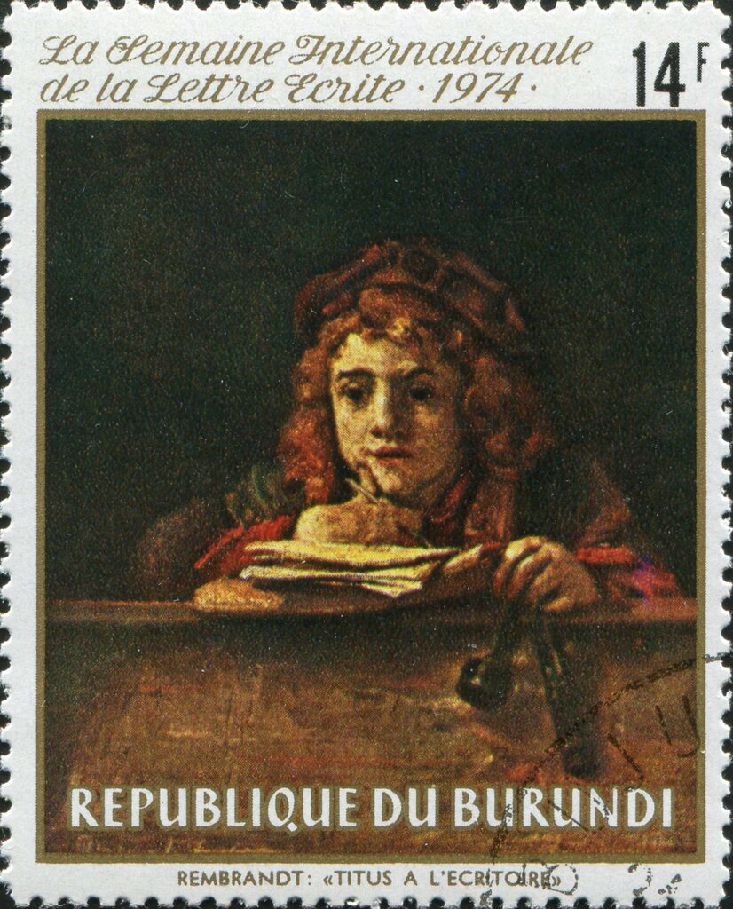 Visibility: public Image owner: none postage 10/1/1974 14fr multi issue=International Letter Writing Week 1974 d="Titus at Desk" - Rembrandt unwmk Crops No visible images cropped from this one. Measurements Resolution is unknown. Source Source name: Colnect File URL: http://i.colnect.net/b/5624/470/Rembrandt---Titus-ŕ-l--Ecritoire--.jpg Uploaded November 12, 2019, 12:04 am by Stan Shebs |
