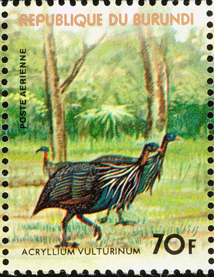 Visibility: public Image owner: none airmail 8/22/1977 70fr multi dt=African Animals (1977) d=Acryllium vulturinum unwmk Crops No visible images cropped from this one. Measurements Resolution is unknown. Source Source name: Colnect File URL: http://i.colnect.net/b/5250/755/Vulturine-Guineafowl-Acryllium-vulturinum.jpg Uploaded November 12, 2019, 12:06 am by Stan Shebs |