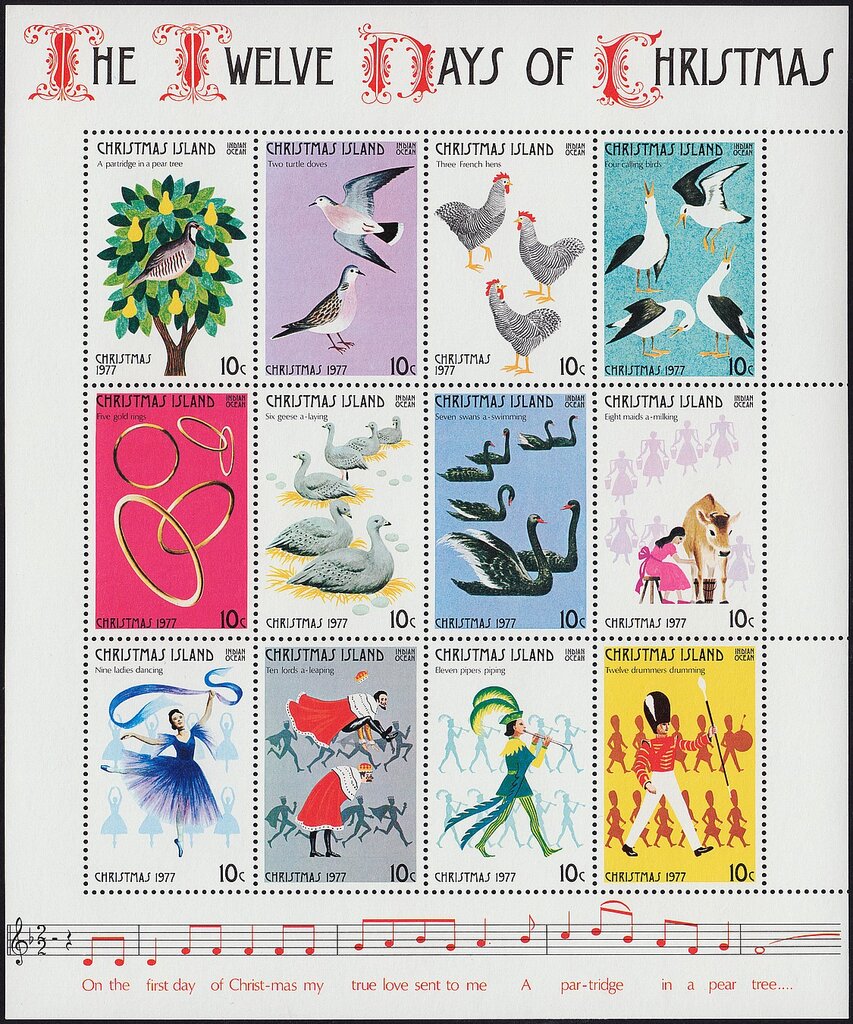 Visibility: public Image owner: none Crops No visible images cropped from this one. Measurements Resolution is unknown. Source Source name: Colnect File URL: http://i.colnect.net/b/5845/480/The-Twelve-Days-of-Christmas.jpg Uploaded November 19, 2019, 4:44 pm by Stan Shebs |
