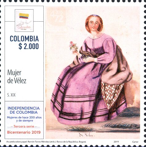 Visibility: public Image owner: none postage 11/13/2019 2000p multi issue=200th Anniversary of the Independence of Colombia - Images of 19th Century Colombian Women unwmk Crops No visible images cropped from this one. Measurements Resolution is unknown. Source Source name: Colnect File URL: http://i.colnect.net/b/6224/272/Woman-From-Velez.jpg Uploaded November 19, 2019, 5:40 pm by Stan Shebs |