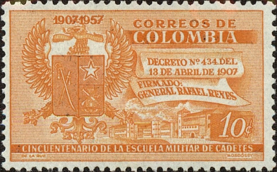 Visibility: public Image owner: none postage 7/20/1957 10c issue=Colombian Military Academy 50th unwmk perf=13 Crops No visible images cropped from this one. Measurements Resolution is unknown. Source Source name: Colnect File URL: http://i.colnect.net/b/4945/496/Coat-of-Arms-Academy.jpg Uploaded November 19, 2019, 6:36 pm by Stan Shebs |