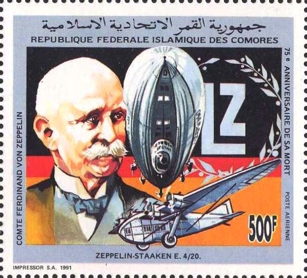 Visibility: public Image owner: none postage 11/18/1991 500fr multi dt=Anniversaries and Events (1991 Comoro Islands) d=Ferdinand von Zeppelin unwmk perf=13.25 Crops No visible images cropped from this one. Measurements Resolution is unknown. Source Source name: Colnect File URL: http://i.colnect.net/b/5732/611/Ferdinand-von-Zeppelin.jpg Uploaded November 19, 2019, 11:16 pm by Stan Shebs |