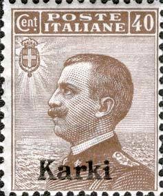 Visibility: public Image owner: none postage 12/1/1912 40c brn issue=1912 d=Victor Emmanuel III (facing left) ovpt=Karki oc=blk on=issuer=Italy-1908-40c-brn-wmk=crown (Italy) wmk=crown (Italy) perf=14 Crops No visible images cropped from this one. Measurements Resolution is unknown. Source Source name: Colnect File URL: http://i.colnect.net/b/1085/515/Effigy-of-Vittorio-Emanuele-III-to-the-left-overprinted.jpg Uploaded August 27, 2014, 1:51 pm by Stan Shebs |