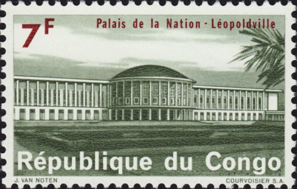 Visibility: public Image owner: none postage 9/15/1964 7fr dkolgrn&carbrn d=National Palace (1964) unwmk Crops No visible images cropped from this one. Measurements Resolution is unknown. Source Source name: Colnect File URL: http://i.colnect.net/b/5640/305/Palace-of-The-Nation-Léopoldville-Kinshasa.jpg Uploaded November 20, 2019, 2:43 pm by Stan Shebs |