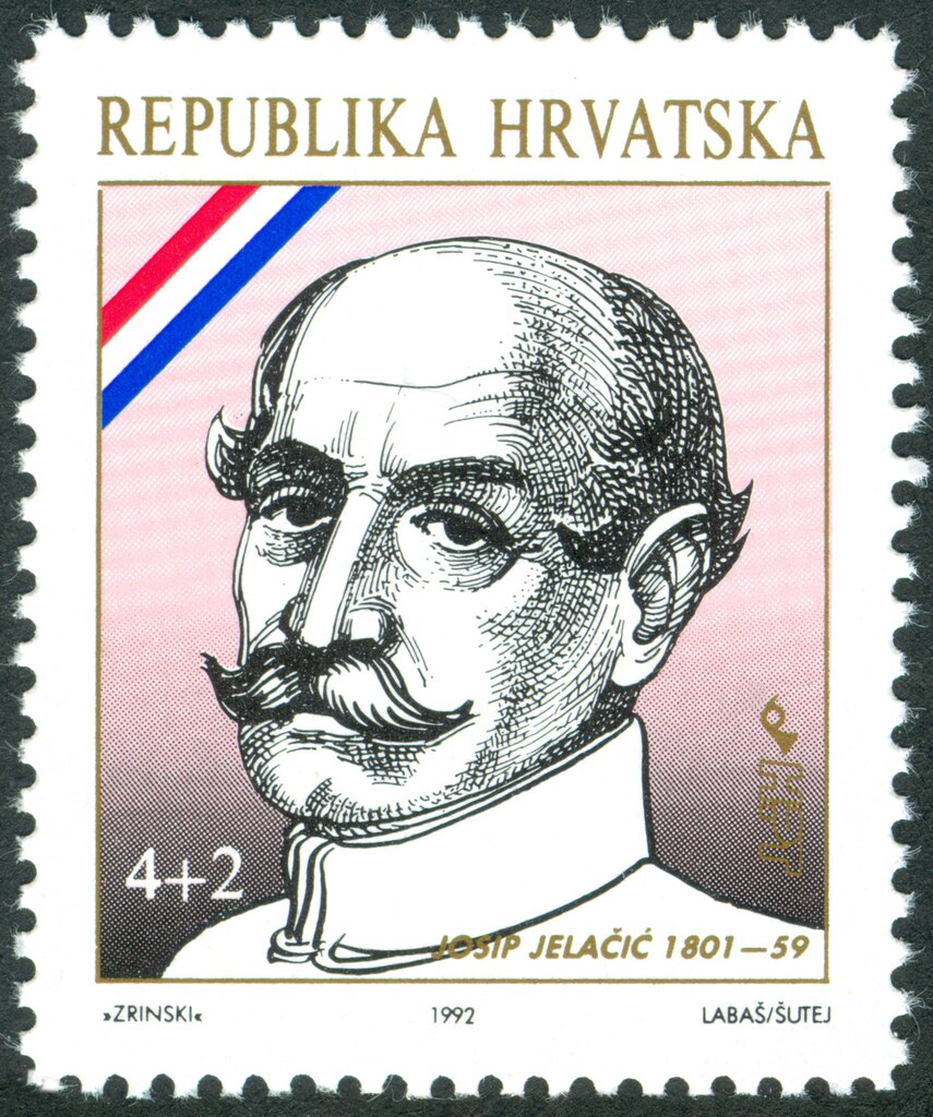 Visibility: public Image owner: none semipostal 2/1/1992 4+2d multi issue=Great Croats 1992 d=Josip Pl. Jelacic unwmk Crops No visible images cropped from this one. Measurements Resolution is unknown. Source Source name: Colnect File URL: http://i.colnect.net/b/5626/364/Josip-Jelačić-1801–1859.jpg Uploaded November 20, 2019, 7:45 pm by Stan Shebs |