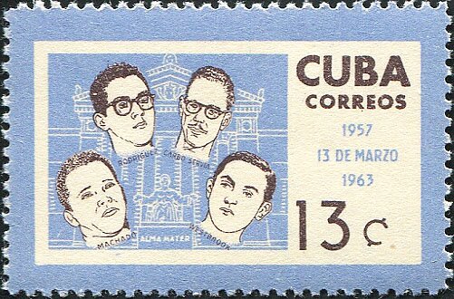 Visibility: public Image owner: none postage 3/13/1963 13c multi issue=presidential palace attack 6th d=leaders wmk=R de C - monogram perf=12.5 Crops No visible images cropped from this one. Measurements Resolution is unknown. Source Source name: Colnect File URL: http://i.colnect.net/b/5675/192/Four-student-leaders.jpg Uploaded November 21, 2019, 3:46 pm by Stan Shebs |