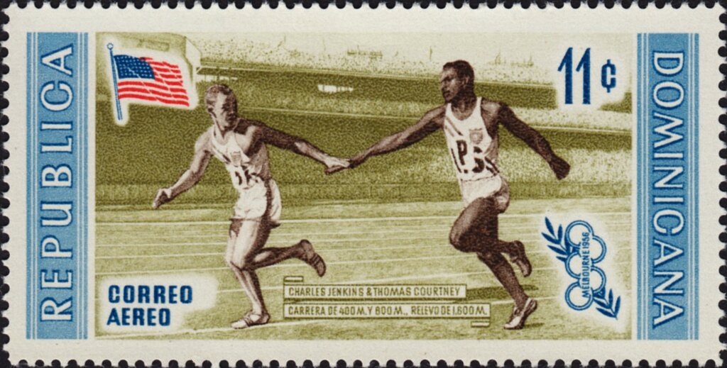 Visibility: public Image owner: none airmail 10/30/1958 11c multi issue=Olympics 1956 winners c d=Charles Jenkins and Thomas Courtney wmk=crosses & circles perf=14 Crops No visible images cropped from this one. Measurements Resolution is unknown. Source Source name: Colnect File URL: http://i.colnect.net/b/5684/986/Charles-Jenkins-1934-Thomas-Courtney-1933.jpg Uploaded November 22, 2019, 5:30 pm by Stan Shebs |