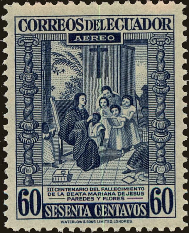 Visibility: public Image owner: none airmail 11/28/1946 60c issue=Blessed Mariana death 300th d=Mariana teaching children unwmk Crops No visible images cropped from this one. Measurements Resolution is unknown. Source Source name: Colnect File URL: http://i.colnect.net/b/5395/522/Hl-Mariana-de-Jesús-Paredes-y-Flores.jpg Uploaded November 23, 2019, 12:51 am by Stan Shebs |