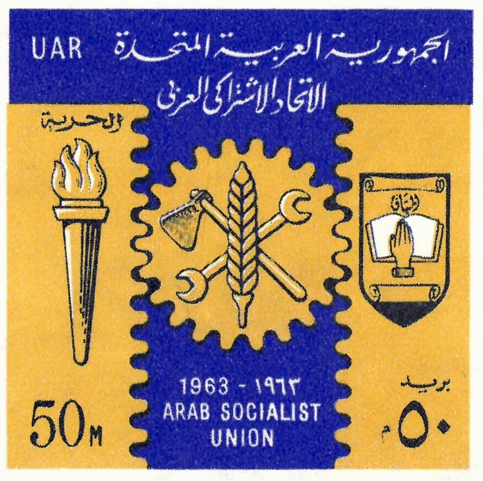 Visibility: public Image owner: none Crops No visible images cropped from this one. Measurements Resolution is unknown. Source Source name: Colnect File URL: http://i.colnect.net/b/5943/160/11th-Anniversary---Arab-Socialist-Union-Emblem.jpg Uploaded November 25, 2019, 4:08 pm by Stan Shebs |