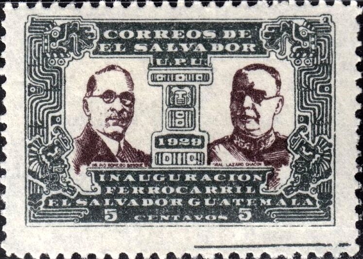 Visibility: public Image owner: none postage 5c issue=international railroad opening unwmk Crops No visible images cropped from this one. Measurements Resolution is unknown. Source Source name: Colnect File URL: http://i.colnect.net/b/5965/297/Presidents-of-Guatemala-and-El-Salvador.jpg Uploaded November 25, 2019, 6:06 pm by Stan Shebs |