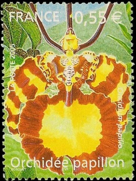 Visibility: public Image owner: none postage 4/25/2005 0,55€ multi issue=Orchids 2005 dt=orchids (2005 France) d=Oncidium papilio (2005) unwmk Crops No visible images cropped from this one. Measurements Resolution is unknown. Source Source name: Colnect File URL: http://i.colnect.net/b/5533/391/Oncidium-papilio-Orchid-Butterfly.jpg Uploaded November 27, 2019, 11:44 pm by Stan Shebs |