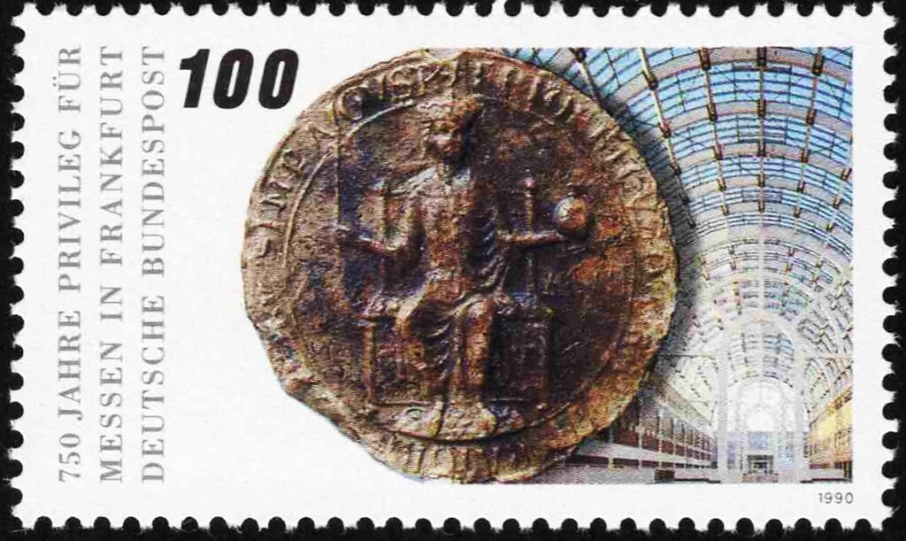 Visibility: public Image owner: none postage 2/15/1990 100(pf) multi issue=Frankfurt fair privileges 750th unwmk perf=14 Crops No visible images cropped from this one. Measurements Resolution is unknown. Source Source name: Colnect File URL: http://i.colnect.net/b/6144/775/Frederick-II-s-Seal-and-Fair-Entrance-Hall.jpg Uploaded December 3, 2019, 7:52 pm by Stan Shebs |