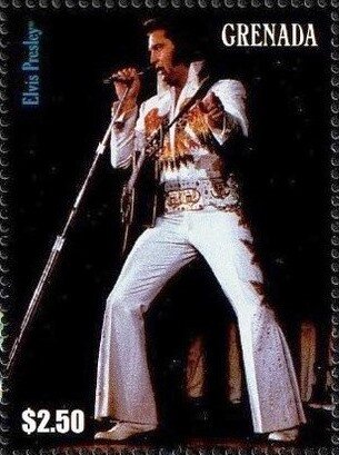Visibility: public Image owner: none postage 4/29/2009 $2.50 multi issue=Elvis Presley wmk=St Edwards crown & CA perf=13.25 Crops No visible images cropped from this one. Measurements Resolution is unknown. Source Source name: Colnect File URL: http://i.colnect.net/b/5983/188/Elvis-Presley.jpg Uploaded December 6, 2019, 4:16 pm by Stan Shebs |