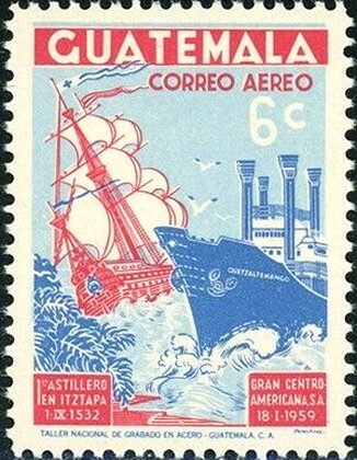 Visibility: public Image owner: none airmail 5/15/1959 6c multi issue=Central American Merchant Marine Commemoration d=freighter"Quetzaltenango" unwmk Crops No visible images cropped from this one. Measurements Resolution is unknown. Source Source name: Colnect File URL: http://i.colnect.net/b/5953/010/Galleon-of-1532-and-fighter-Quetzaltenango.jpg Uploaded December 9, 2019, 4:38 pm by Stan Shebs |