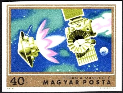 Visibility: public Image owner: none postage 3/11/1974 40f multi dt=Mars exploration d=Spacecraft on way to Mars unwmk perf=12.5 Crops No visible images cropped from this one. Measurements Resolution is unknown. Source Source name: Colnect File URL: http://i.colnect.net/b/6223/197/Spacecraft-enroute-to-Mars.jpg Uploaded December 10, 2019, 8:50 pm by Stan Shebs |