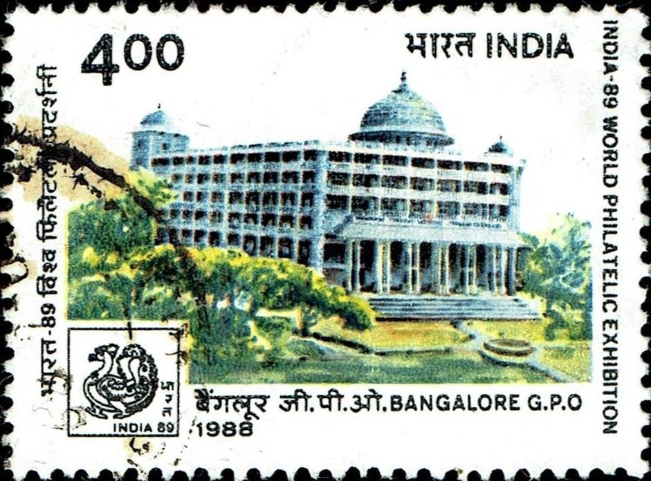 Visibility: public Image owner: none postage 10/9/1988 4r multi issue=India '89 c wmk=Asokan capital Crops No visible images cropped from this one. Measurements Resolution is unknown. Source Source name: Colnect File URL: http://i.colnect.net/b/5389/665/Bangalore-GPO.jpg Uploaded December 11, 2019, 3:34 pm by Stan Shebs |