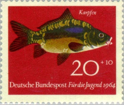 Visibility: public Image owner: none semipostal 4/10/1964 20+10(pf) multi issue=youth 1964 dt=fishes (1964 Germany) d=carp (1964) unwmk Crops No visible images cropped from this one. Measurements Resolution is unknown. Source Source name: Colnect File URL: http://i.colnect.net/images/b/152/454/Common-Carp-Cyprinus-carpio-.jpg Uploaded August 27, 2014, 3:06 pm by Stan Shebs |