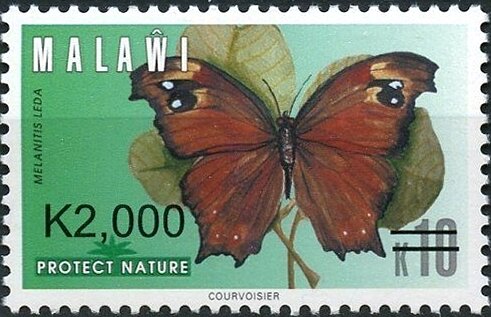 Visibility: public Image owner: none postage 2000k multi issue=2018 Surcharges a dt=butterflies (1996 Malawi) d=Melanitis leda (1996) oc=blk on=1996-10k unwmk Crops No visible images cropped from this one. Measurements Resolution is unknown. Source Source name: Colnect File URL: http://i.colnect.net/b/6028/513/Common-Evening-Brown-Melanitis-leda.jpg Uploaded December 19, 2019, 8:22 pm by Stan Shebs |