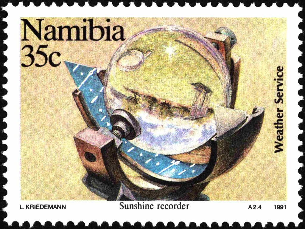 Visibility: public Image owner: none postage 2/2/1991 35c multi issue=Namibian Weather Service 100th d=Sunshine recorder unwmk Crops No visible images cropped from this one. Measurements Resolution is unknown. Source Source name: Colnect File URL: http://i.colnect.net/b/5294/289/Sunshine-recorder.jpg Uploaded December 30, 2019, 5:05 pm by Stan Shebs |