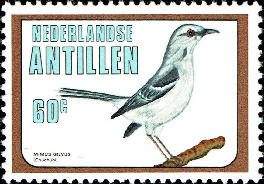 Visibility: public Image owner: none postage 9/3/1980 60c multi dt=birds (1980 Netherlands Antilles) d=tropical mockingbird - Mimus gilvus unwmk Crops No visible images cropped from this one. Measurements Resolution is unknown. Source Source name: Colnect File URL: http://i.colnect.net/b/5314/549/Tropical-Mockingbird Mimus-gilvus.jpg Uploaded January 3, 2020, 9:57 pm by Stan Shebs |