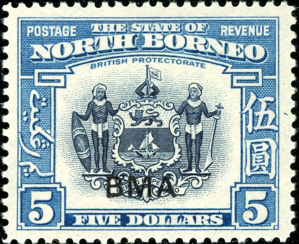Visibility: public Image owner: none postage 12/17/1945 $5 issue=1945 d=arms of North Borneo (1939) ovpt=BMA oc=blk on=1939-$5-arms Crops No visible images cropped from this one. Measurements Resolution is unknown. Source Source name: Colnect File URL: http://i.colnect.net/b/6223/663/Arms-of-the-company---overprinted.jpg Uploaded January 7, 2020, 9:19 pm by Stan Shebs |
