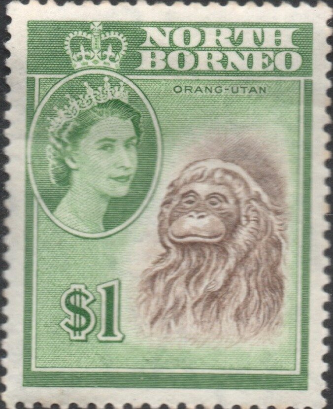 Visibility: public Image owner: none postage 2/1/1961 $1 grn&sep issue=1961 d=orangutan & Queen Elizabeth II wmk=St Edwards crown & CA Crops No visible images cropped from this one. Measurements Resolution is unknown. Source Source name: Colnect File URL: http://i.colnect.net/b/6062/593/Bornean-Orang-Utan-Pongo-pygmaeus.jpg Uploaded January 7, 2020, 9:27 pm by Stan Shebs |