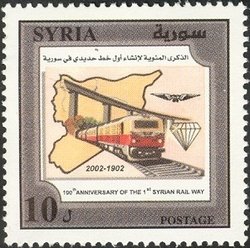 Visibility: public Image owner: none postage 9/9/2002 10lb multi issue=1st Syrian Railway Track 100th unwmk Crops No visible images cropped from this one. Measurements Resolution is unknown. Source Source name: Colnect File URL: http://i.colnect.net/images/b/1428/714/Centenary-of-first-Syrian-Railway-Track.jpg Uploaded August 27, 2014, 3:42 pm by Stan Shebs |