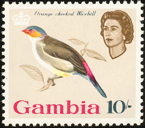 Visibility: public Image owner: none postage 11/4/1963 10sh multi issue=1963 dt=birds (1963 Gambia) d=Orange-cheeked Waxbill wmk=St Edwards crown & CA perf=12.5x13 Crops No visible images cropped from this one. Measurements Resolution is unknown. Source Source name: Colnect File URL: http://i.colnect.net/b/1462/551/Orange-cheeked-Waxbill Estrilda-melpoda- .jpg Uploaded August 27, 2014, 3:42 pm by Stan Shebs |