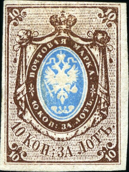 Visibility: public Image owner: none postage 12/10/1857 10k brn&blue d=arms of Russia (1857 mantled) wmk=numeral imperf Crops No visible images cropped from this one. Measurements Resolution is unknown. Source Source name: Colnect File URL: http://i.colnect.net/b/5930/118/Coat-of-arms-in-an-oval-framed-by-a-mantle-with-a-crown.jpg Uploaded January 13, 2020, 11:18 pm by Stan Shebs |