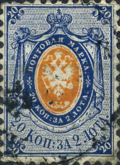 Visibility: public Image owner: none postage 10/28/1858 20k bl&org issue=1858b d=arms of Russia (1857 mantled) unwmk perf=12.5 Crops No visible images cropped from this one. Measurements Resolution is unknown. Source Source name: Colnect File URL: http://i.colnect.net/b/6187/922/Coat-of-Arms-of-Russian-Empire-Postal-Dep-with-Mantle.jpg Uploaded January 13, 2020, 11:21 pm by Stan Shebs |