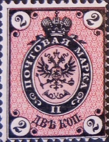 Visibility: public Image owner: none postage 7/1875 2k blk&red issue=1875 d=arms of Russia (1864 oval) wmk=Cyrillic EZGB & wavy lines perf=14.5-15 paper=horizontally laid Crops No visible images cropped from this one. Measurements Resolution is unknown. Source Source name: Colnect File URL: http://i.colnect.net/b/6303/532/Coat-of-Arms-of-Russian-Empire-Postal-Department-with-Crown.jpg Uploaded January 13, 2020, 11:42 pm by Stan Shebs |
