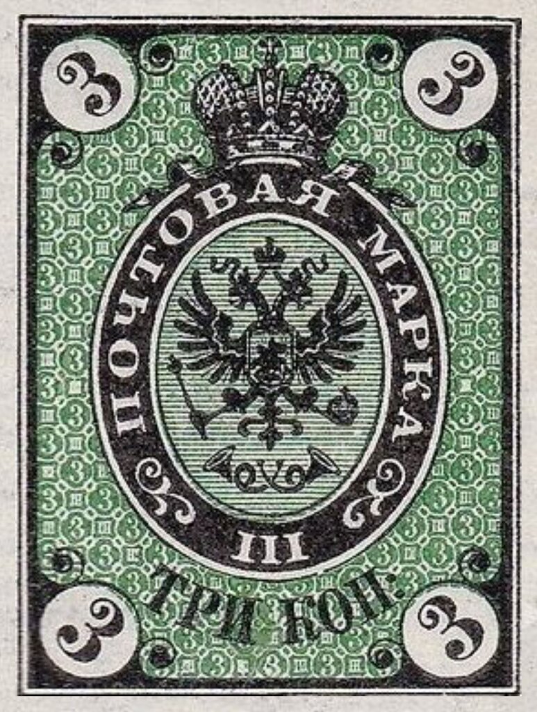 Visibility: public Image owner: none postage 3k blk&grn issue=1866 d=arms of Russia (1864 oval) wmk=Cyrillic EZGB & wavy lines perf=14.5-15 paper=horizontally laid Crops No visible images cropped from this one. Measurements Resolution is unknown. Source Source name: Colnect File URL: http://i.colnect.net/b/5950/863/Coat-of-Arms-of-Russian-Empire-Postal-Department-with-Crown.jpg Uploaded January 13, 2020, 11:42 pm by Stan Shebs |
