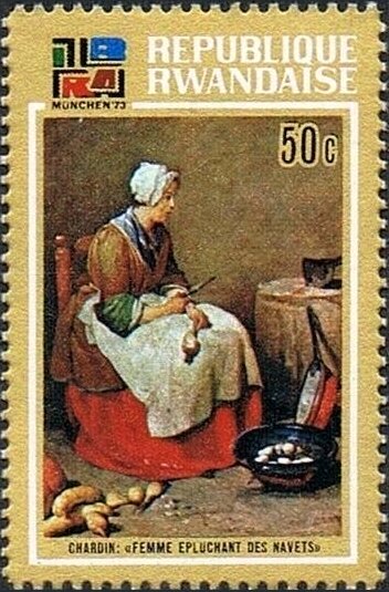 Visibility: public Image owner: none postage 5/11/1973 50c multi issue=IBRA '73 dt=paintings in Old Pinakothek unwmk Crops No visible images cropped from this one. Measurements Resolution is unknown. Source Source name: Colnect File URL: http://i.colnect.net/b/5895/899/-Woman-Peeling-Turnips--Chardin-.jpg Uploaded January 14, 2020, 5:06 pm by Stan Shebs |