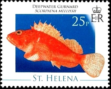 Visibility: public Image owner: none postage 8/19/2008 25p multi issue=2008 dt=fishes (2008 St. Helena) d=deepwater gurnard wmk=mult crown & script CA Crops No visible images cropped from this one. Measurements Resolution is unknown. Source Source name: Colnect File URL: http://i.colnect.net/b/5946/262/Deepwater-Gurnard-Scorpaena-mellissii.jpg Uploaded January 14, 2020, 7:20 pm by Stan Shebs |