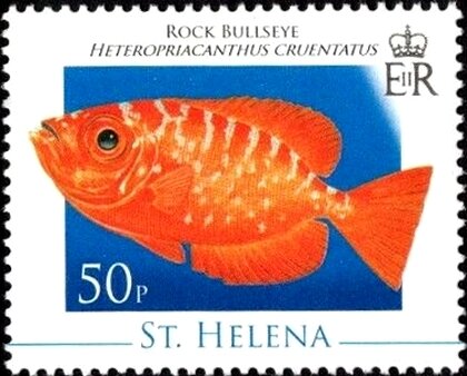 Visibility: public Image owner: none postage 8/19/2008 50p multi issue=2008 dt=fishes (2008 St. Helena) d=Rock Bullseye (2008) wmk=mult crown & script CA Crops No visible images cropped from this one. Measurements Resolution is unknown. Source Source name: Colnect File URL: http://i.colnect.net/b/5943/959/Rock-bullseye-Heteropriacanthus-cruentatus.jpg Uploaded January 14, 2020, 7:20 pm by Stan Shebs |