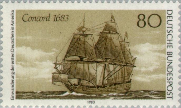 Visibility: public Image owner: none postage 5/5/1983 80(pf) brn issue=Germany-US immigration 300th d=ship Concord unwmk perf=14 Crops No visible images cropped from this one. Measurements Resolution is unknown. Source Source name: Colnect File URL: http://i.colnect.net/b/153/352/Concord-1683.jpg Uploaded August 27, 2014, 4:22 pm by Stan Shebs |