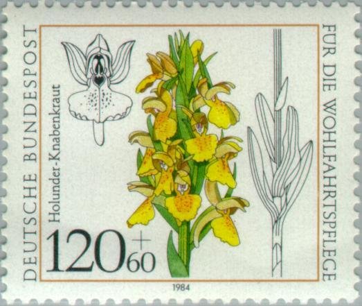 Visibility: public Image owner: none semipostal 10/18/1984 120+60(pf) multi issue=welfare 1984 dt=orchids (1984 Germany) d=Dactylorhiza sambucina (1984) unwmk Crops No visible images cropped from this one. Measurements Resolution is unknown. Source Source name: Colnect File URL: http://i.colnect.net/images/b/153/406/Dactylorhiza-sambucina.jpg Uploaded March 18, 2013, 1:16 am by Stan Shebs |