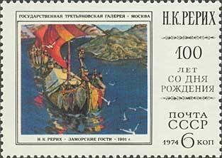 Visibility: public Image owner: none postage 10/3/1974 6k multi issue=N.K. Roerich 100th d=Guests from Overseas, by Nicholas Konstantin Roerich unwmk perf=12.25x11.75 Crops No visible images cropped from this one. Measurements Resolution is unknown. Source Source name: Colnect File URL: http://i.colnect.net/b/194/579/The-100th-Birth-Anniversary-of-NKRoerich-1874-1947.jpg Uploaded August 27, 2014, 4:30 pm by Stan Shebs |