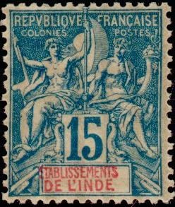 Type: stamp Issuer: French India Date: 1892 Denom: ?