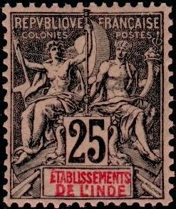 Type: stamp Issuer: French India Date: 1892 Denom: ?